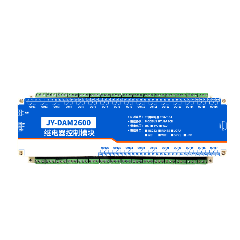 聚英電子提供繼電器控制(DO)+模擬量采集(AI)+開關量采集(DI)+模擬量輸出(AO),多路混合模塊,標準Modbus協議,支持Modbus RTU/ASCII,支持點動/聯動智能控制,提供配套軟件,支持二次開發,RS232/RS485/4G/USB/RJ45/網口/WiFi/GPRS/Lora多種通訊方式可選。