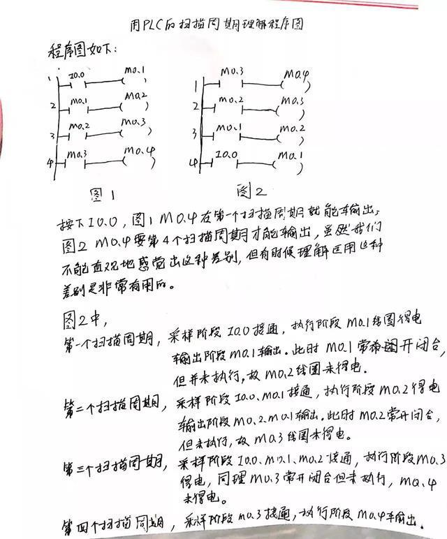 需要注意的是,雖然PLC與傳統(tǒng)繼電器在觸點和線圈響應時間上沒有區(qū)別,但當傳統(tǒng)繼電器在觸點和線圈響應時間上沒有區(qū)別時,PLC中觸點和線圈的位置在邏輯上是不同的。下圖中的兩個程序看起來相同,但實際執(zhí)行結(jié)果完全不同。I0.0,圖1中的M0.4可以在第一個掃描周期中輸出,圖2中的M0.4只能在第四個掃描周期中輸出。雖然直觀上是同時輸出的,但程序邏輯上有很大的差異。如果不深入理解PLC工作原理,很難理解PLC程序的運行邏輯。