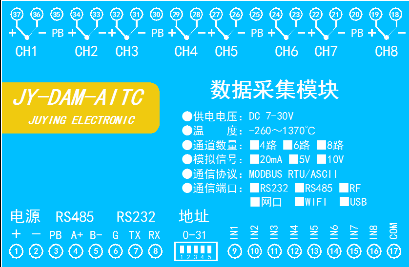 型號 | modbus | RS232 | RS485 | USB | WiFi | AI | K型熱電偶 |