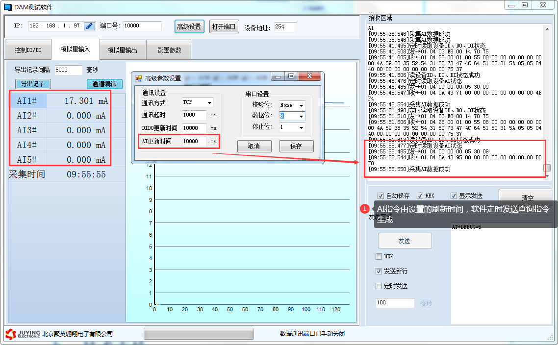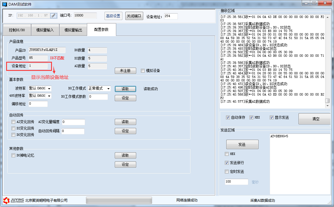 詳細(xì)使用說明參考:JYDAM調(diào)試軟件使用說明文檔