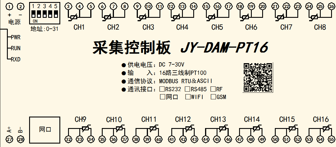 功能說明:16路PT100