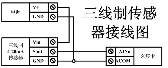 下圖中采集卡中的AINn接口指AD_1-AD_10,ACOM指COM。