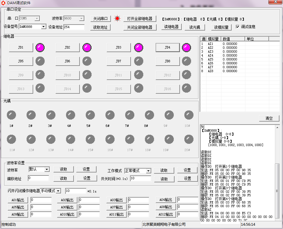 指令可通過“聚英翱翔DAM調試軟件”,的調試信息來獲取。