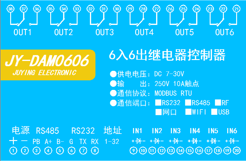 DAM0606-RS232+485 | ● | ● | ● | 6 | 6 |