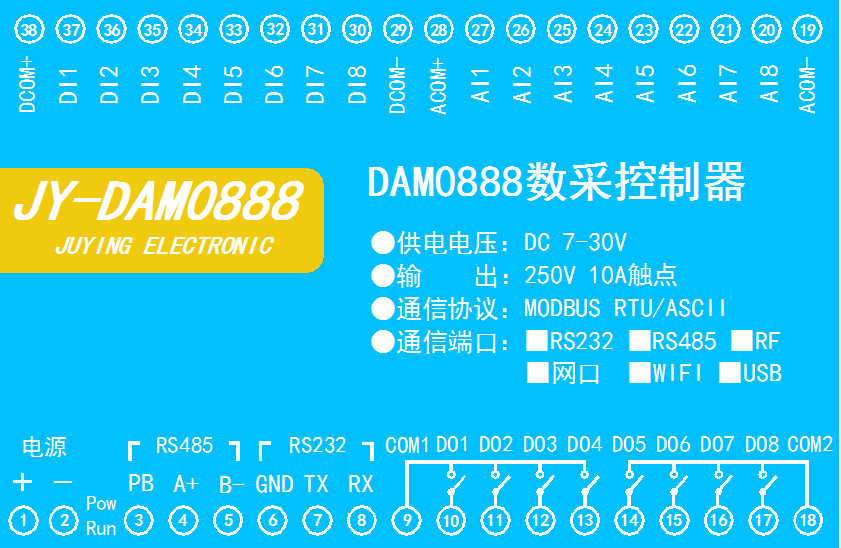 DAM0888-RS232+485 | ● | ● | ● | 8 | 8 | 8 |