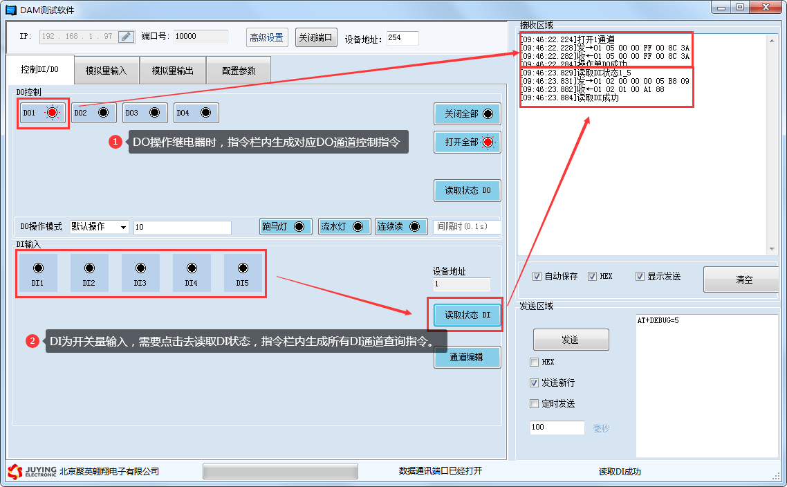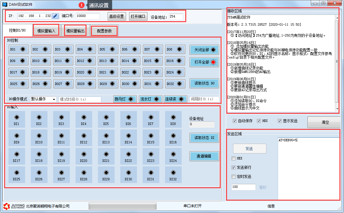 詳細使用說明參考:JYDAM調(diào)試軟件使用說明