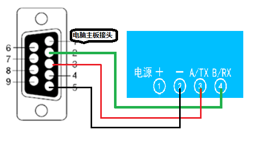 電腦自帶的串口一般是RS232,需要配232-485轉換器(工業環境建議使用有源帶隔離的轉換器),轉換后RS485為A、B兩線,A接板上A端子,B接板上B端子,485屏蔽可以接GND。若設備比較多建議采用雙絞屏蔽線,采用鏈型網絡結構。