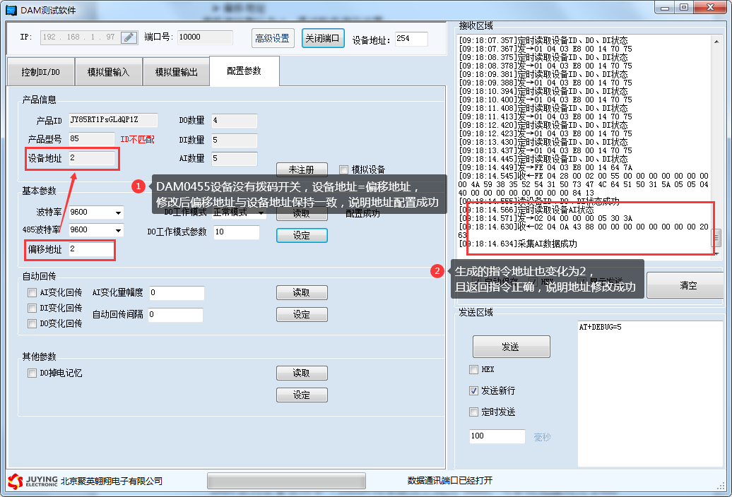 詳細使用說明參考:JYDAM調(diào)試軟件使用說明文檔